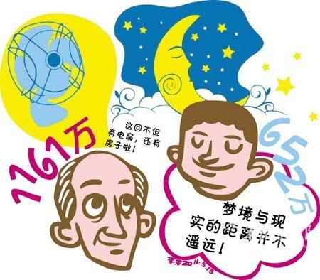 俗話說“有心栽花花不成,無心插柳柳成蔭”,購彩過程往往也如是,精心選擇的號碼不一定中獎,偶爾或隨意選的號卻往往帶來意外驚喜;有些人為中獎殫精竭慮一無所獲,也有些人稀里糊涂地就被大獎砸中了。 原想要臺電扇卻得了1100萬 江蘇省體彩為了回饋彩民而開展“買大樂透送電扇”的活動,無錫的張大爺就是沖著電扇買了一張12元的復式票,然后再用剩余的3元錢又買了一注追加票。結果,這個“無心插柳”舉動的結果是:張大爺電扇沒中到,卻一舉中得大樂透11049期頭獎,獎金高達1161萬元。 張大爺已經買了好幾年彩票,但每次數額都不大,從沒有超過10元錢,更別說什么復式票了。不過眼下的買大樂透送電扇活動還是挺吸引張大爺的,只要買6碼的復式票就有機會中臺電扇!安痪褪嵌嗉訋讐K錢嗎?正好夏天也來了,中臺電扇還是不錯的!睆埓鬆斣局皇潜е@樣的想法。 4月30日這天,他獨自一人來到了02777銷售站點,在仔細咨詢過之后,掏出了15塊錢,打了一張最小的6碼的12元復式票。 這張復式票很快就被打了出來,遺憾的是序列號的后兩位并不是“88”,所以沒中得電扇。銷售員見張大爺很失望就安慰他:“你正好還有3塊錢零錢,不如再來1注追加吧!睆埓鬆敭敃r的情緒不高,還以為站點忽悠他呢,不過想想這3元錢雖然不能買復式,隨機還是可以買的,就這樣,一張隨機的3元票出爐了。 第二天開獎,張大爺認真核對中獎號碼后樂開了花。看到他的興奮樣子,老伴問是不是中了1000多元。繌埓鬆敾卮鸬溃骸澳闵僬f了個萬字! 夢到中獎號堅守4年有回報 有人為了中獎費盡心思,可也有人僅憑著夢里的一組號碼,竟然意外中得大獎。5月7日中得大樂透11052期一等獎的吉林彩民張先生就是這樣一位幸運的彩民。 “要不是我媳婦用手機上網看到了開獎信息,我到現在還不知道中獎呢!”提起中得超級大樂透652萬元的獎金,張先生笑得合不攏嘴!拔屹I彩票的號碼,我媳婦都知道,平時我忙,雖然買了彩票,但是總是忘記兌獎,這回多虧我媳婦看到開獎號,不然說不定錯過大獎呢! |