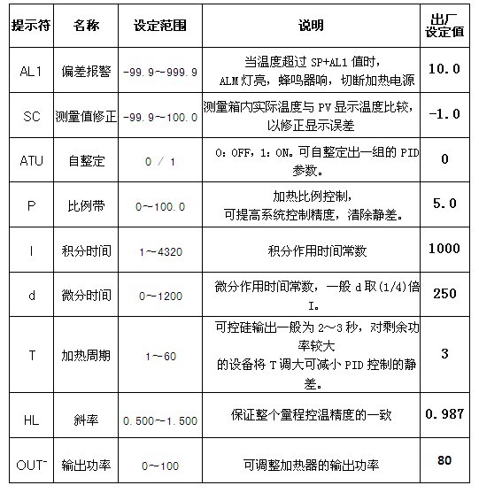 上圖為(鼓風(fēng)干燥箱各項功能參數(shù)一覽表)