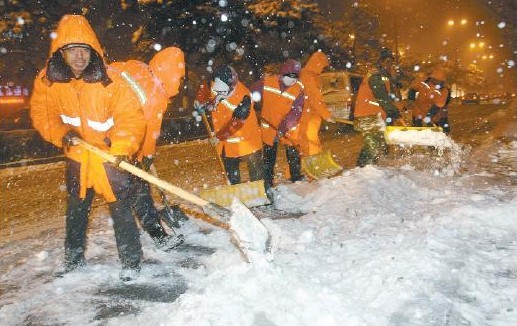 每當(dāng)大雪來(lái)臨時(shí),市民們都想快點(diǎn)回家,可是有一批人得準(zhǔn)備好向外出發(fā)。 對(duì)!這就是具有“城市美容師”之稱(chēng)的環(huán)衛(wèi)工人。 昨日沈陽(yáng)暴雪,沈陽(yáng)全市的環(huán)衛(wèi)工人在雪地中度過(guò)了一個(gè)寒冷的夜晚。 連夜除雪 早上還得接著干 昨夜,記者在沈陽(yáng)街頭,每隔一段路程就看到一批環(huán)衛(wèi)工人在掃雪。在北陵大街和昆山路交通崗北側(cè),有20余名環(huán)衛(wèi)工人在路上除雪。皇姑區(qū)建管局遼河城管所北陵大街環(huán)衛(wèi)班班長(zhǎng)張東冬說(shuō),他們負(fù)責(zé)的區(qū)域就是北陵大街的全線,她早上不到6點(diǎn)鐘就從家出發(fā)了。 張東冬的家在西瓦窯,距離工作區(qū)域有20分鐘的路程。張東冬說(shuō):“早上還是正常的掃保作業(yè),中午所里開(kāi)會(huì)說(shuō)要下大雪,下午就開(kāi)始作準(zhǔn)備,不到晚上8點(diǎn)就到掃保區(qū)域開(kāi)始除雪了。” 當(dāng)記者問(wèn)到除雪得干多長(zhǎng)時(shí)間時(shí),張東冬表示:“今天這場(chǎng)雪這么大,并且現(xiàn)在還在下,估計(jì)后半夜雪停后,還得干上一段時(shí)間,怎么也得干上一宿,北陵大街的機(jī)動(dòng)車(chē)道才能見(jiàn)亮。明天早上還得接著除慢車(chē)道上的積雪,怎么也得連續(xù)干上24個(gè)小時(shí),對(duì)于我們這是常事兒!” 拉開(kāi)外衣 里面都結(jié)了冰晶 昨夜的大雪配合著大風(fēng)天氣,雪花被風(fēng)吹打到人的臉上都會(huì)有疼痛的感覺(jué)。入夜后氣溫迅速降低,夜間最低氣溫降到了-10℃。環(huán)衛(wèi)工人穿著厚厚的棉衣開(kāi)始在寒風(fēng)中工作。張東冬告訴記者她穿了三層外衣,拉開(kāi)最外層外衣的拉鎖,記者看見(jiàn)在外衣的里面已經(jīng)結(jié)了一層冰晶。 張東冬表示,這才干了3個(gè)小時(shí),要是干上一晚上第二天回家脫下來(lái)的內(nèi)衣都能擰出水來(lái)。 夜間吃飯 迎風(fēng)就雪吃下 環(huán)衛(wèi)工人到了吃飯和喝水的時(shí)候是最難的了,他們到了飯點(diǎn)就只能在冰天雪地中吃飯。 一般到了吃飯的時(shí)候,所里會(huì)給大家?guī)?lái)盒飯,白天還好些,還能在街邊的門(mén)市網(wǎng)點(diǎn)里吃飯,要是到了深夜,網(wǎng)點(diǎn)都關(guān)門(mén)了,就只能在路邊吃飯了。晚上環(huán)衛(wèi)們都會(huì)吃些簡(jiǎn)單方便的食品,沒(méi)等吃呢食物都已經(jīng)涼透了,時(shí)常飛舞的雪花還會(huì)到嘴里。喝水就更難了,帶的水不一會(huì)兒就涼了,有時(shí)候還會(huì)結(jié)冰。昨夜,皇姑區(qū)建管局遼河城管所所長(zhǎng)曲樂(lè)平接受記者采訪時(shí)表示:“全所所有的環(huán)衛(wèi)都已上街除雪,會(huì)克服一切困難,保證23日早上機(jī)動(dòng)車(chē)道清掃完成,明天還將對(duì)慢車(chē)道進(jìn)行除雪,保證市民出行順暢。” |