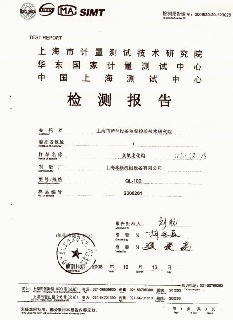 08年8月份,上海市特種設備監(jiān)督檢驗技術研究院在經(jīng)過眾多篩選后最終選擇林頻,與我司正式簽約一臺型號為QL-100的臭氧老化試驗箱,在出廠前嚴格把關,并已通過上海計量院第三方檢測合格,現(xiàn)已驗收合格并已成功交付使用.因為我們專業(yè),所以值得信賴!
